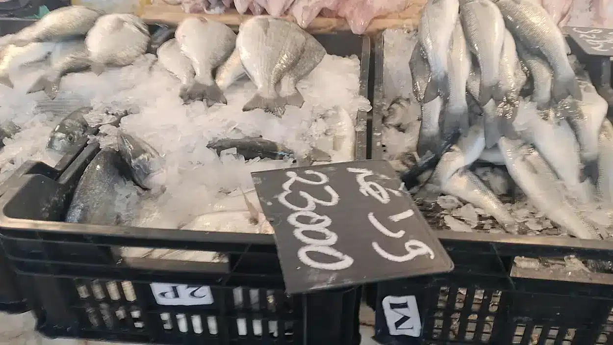 Dorade : 23 dinars/kgCrevette : 18 dinars/kgLoup de mer : 27,5 dinars/kg